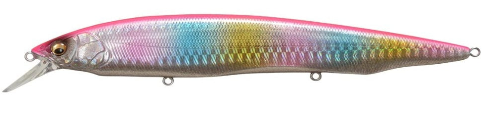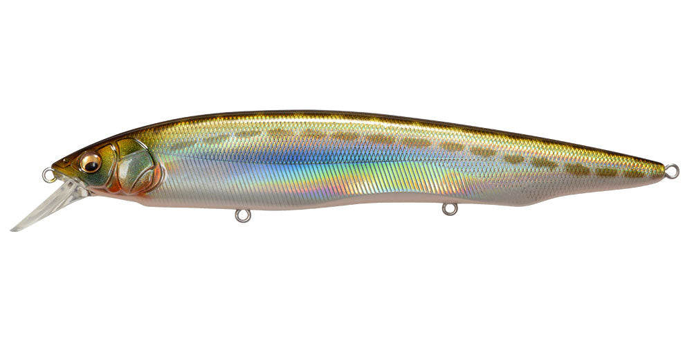 The high impact jerkbait KANATA AYU was designed to target fish that are keyed in on larger bait. With a streamlined, slender body, KANATA keeps resistance to a minimum. This allows for a fast, action-packed retrieve that will not put undue stress on angler’s wrists and forearms, even with a Medium Heavy setup. Sharp rod work fuels energetic darting action. Straight retrieve shows off a high-pitch rolling action with flashing visual appeal. Aerodynamic form and custom-fitted Megabass original Tungsten Triple Oscillating moving balancer system powers effortlessly long casts, allowing KANATA to target those clever monster fish from long range. KANATA AYU brings a new size and sensation to the jerkbait game.
