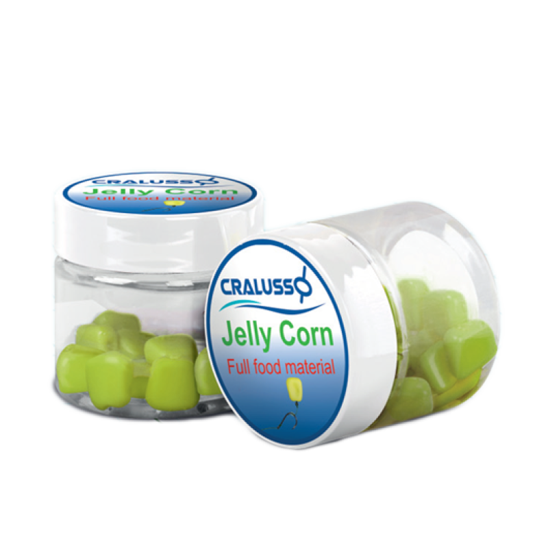 The new environmentally friendly Jelly Corn rubber maize baits developed by Cralusso are made from raw materials used in the food industry. Jelly Corn, manufactured from natural raw materials, is flexible, like conventional rubber maize baits. The new generation rubber maize is a digestible hook bait, coloured with food colouring agents; it is very attractive to fish and provides for extremely efficient fishing. The slowly sinking baits come in three sizes, sold in air-tight storing boxes.