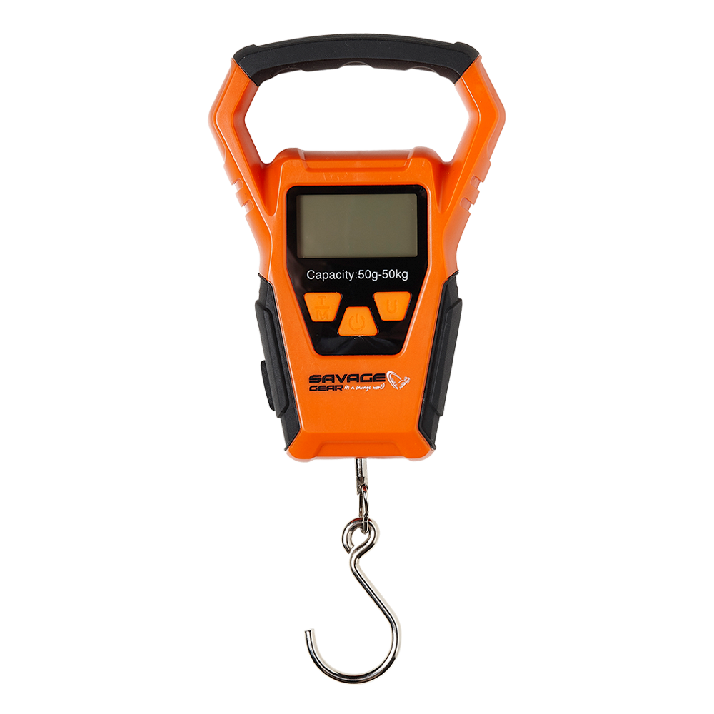 SAVAGE GEAR DIGI SCALE SW >50KG When you catch the fish of a lifetime, you need scales you can rely on. That’s where the waterproof Savage Gear Digi Scale comes in. Featuring a crystal-clear LCD display with blue backlight, these scales accurately measure weights of up to 50kg in increments of 10g in a matter of seconds. They’re also saltwater resistant, so you can take them anywhere.