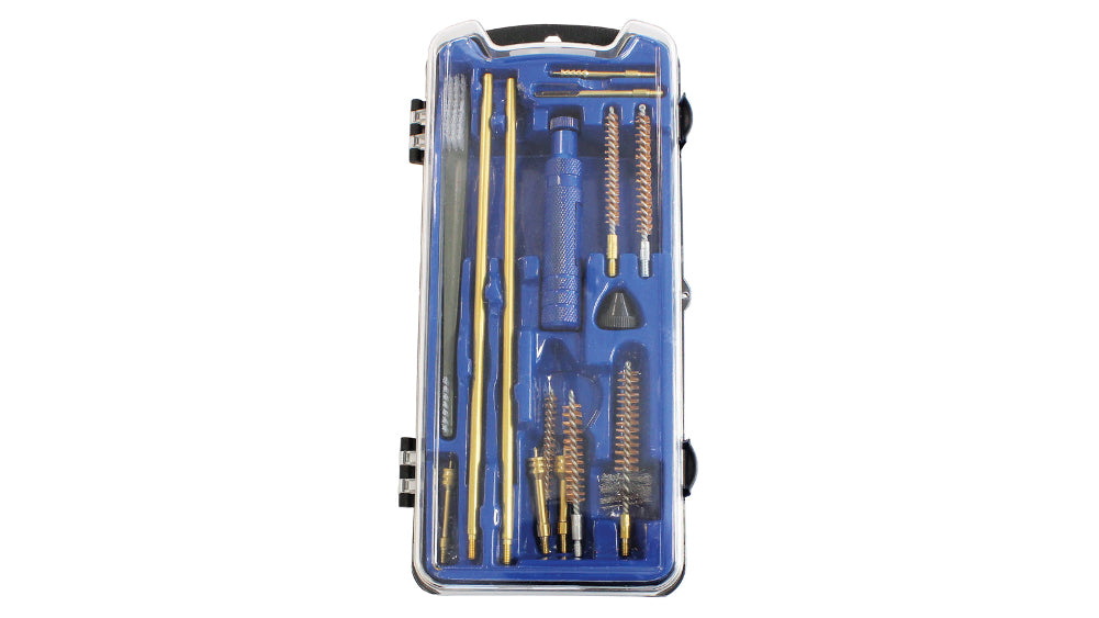 Birchwood Casey Rifle Cleaning Kit includes: 4 brass jags (.22, .243/.25, .270/.28 and .30 caliber), 4 bore brushes, 4 stainless steel rod sections, 1 cleaning handle, 1 muzzle guard, 1 AR-15 chamber brush, 1 utility brush, and 1 patch holder. This rifle cleaning kit has all the tools you need to keep your rifles at its highest level. It features cleaning accessories of today's most popular calibers. All come packed in an organized carrying case. Specifications and Features: Birchwood Casey Rifle Cleaning Kit .22 to .30 Caliber Organized carrying case Includes: 4 brass jags (.22, .243/.25, .270/.28 and .30 caliber) 4 bore brushes 4 stainless steel rod sections Cleaning handle Muzzle guard AR-15 chamber brush Utility brush Patch holder