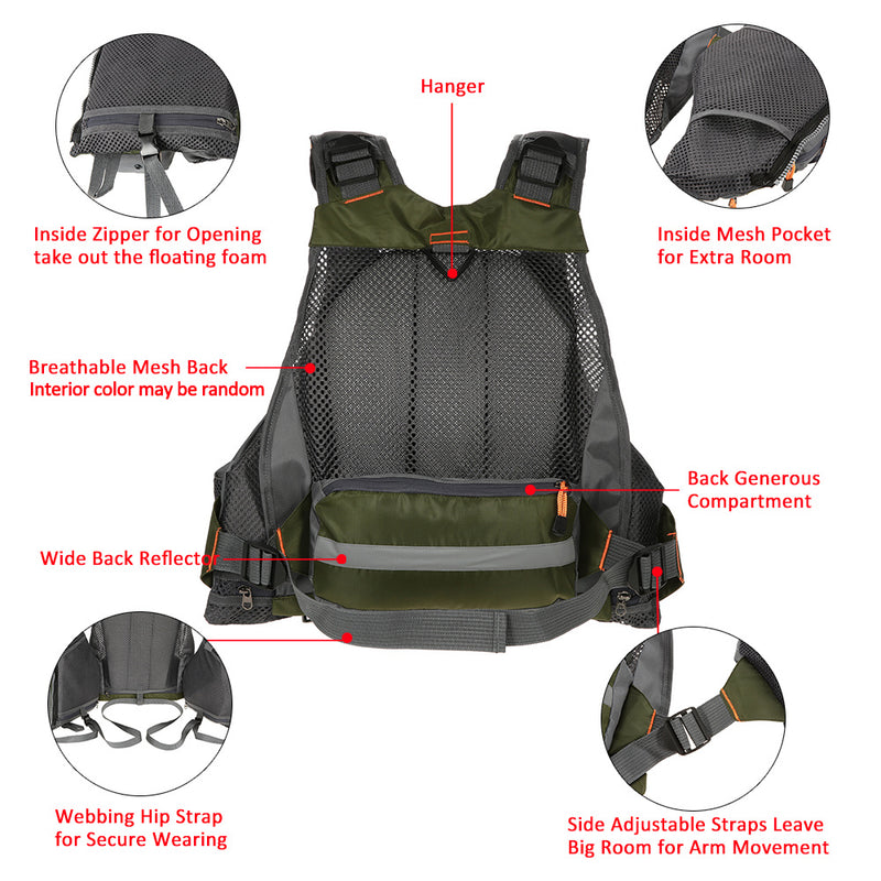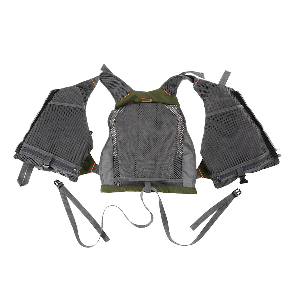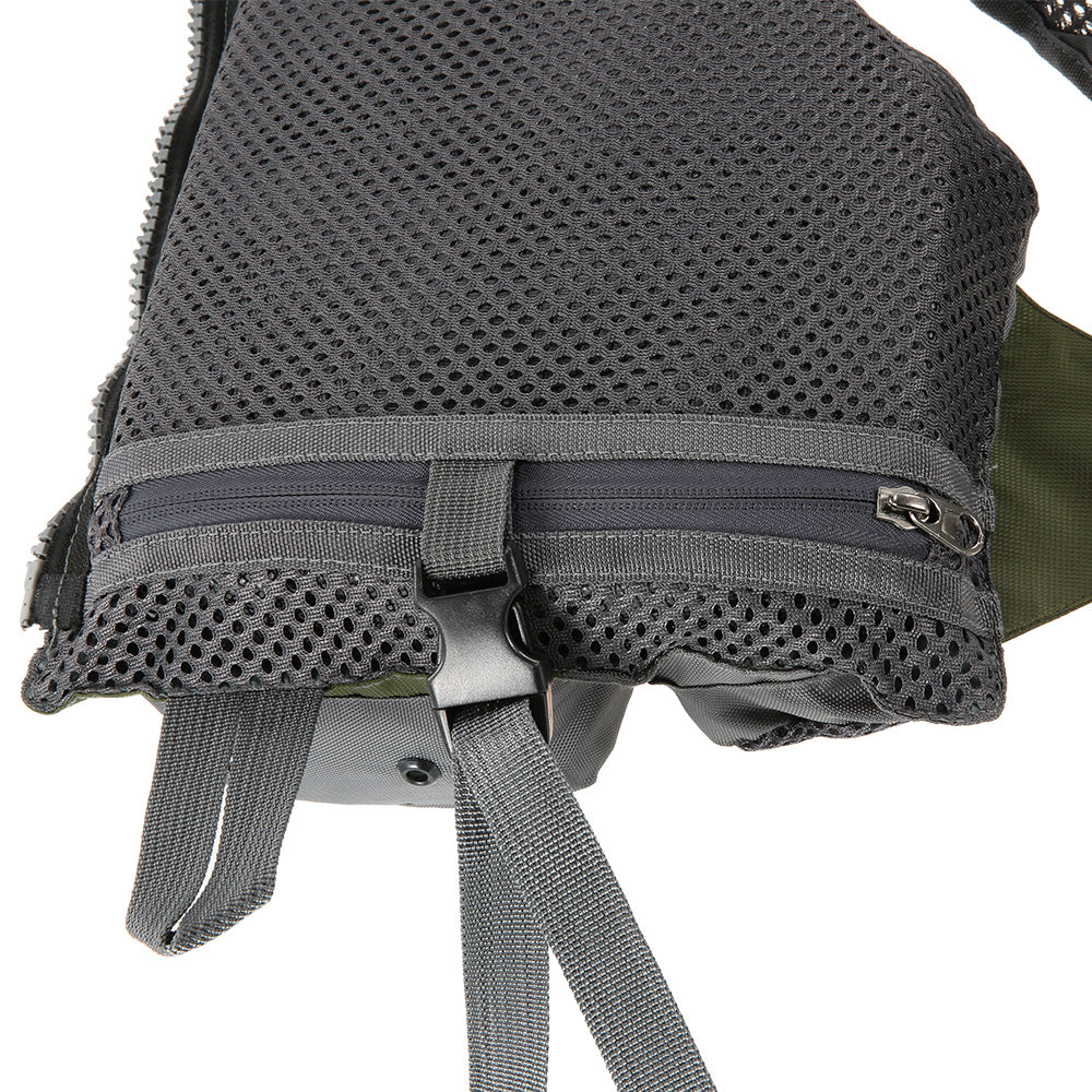 This fishing Life jacket looks more like an outdoor vest with total 11 zippered pockets and multi attachments and accessory loops on its front and wide reflectors on the back and shoulder. Underneath the exterior it’s a fully functional flotation device which is detachable for functioning as a shear fishing gear carrier. And this vest will fit almost any person due to webbed adjustable buckle straps. If your main priority is gear storage, this life vest is one of a kind. It’s great for fly fishing, kayak fishing, canoe fishing (pretty much any type of fishing).