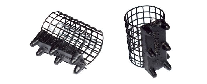 Feeder with metal mesh. Prominent legs protrude from the bottom of the feeder, which prevent the feeder from moving along the bottom and hold it in place. The clamping loop and net are sealed to the surface of the feeder, which increases durability and reliability. It quickly releases the feed mixture, which makes it suitable for fast fishing with frequent shifts.
