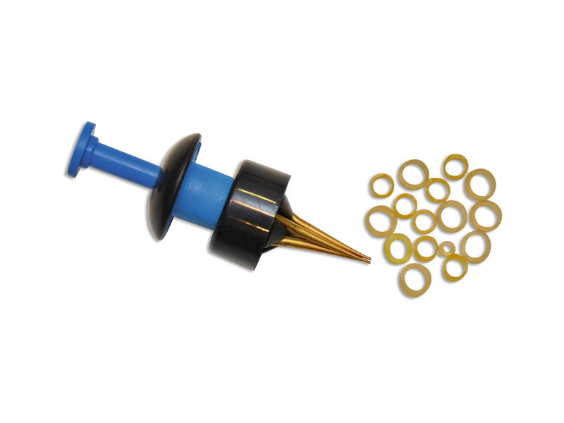 Special clamp for easier and convenient placement of pellets in rubber rings.